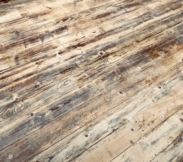 We wondered whether we needed new floorboards, but discovered, that the hardwood floor underneath was in healthy condition. It needed some care along cracks and gaps, but really ads flavour and life to the busy space.
