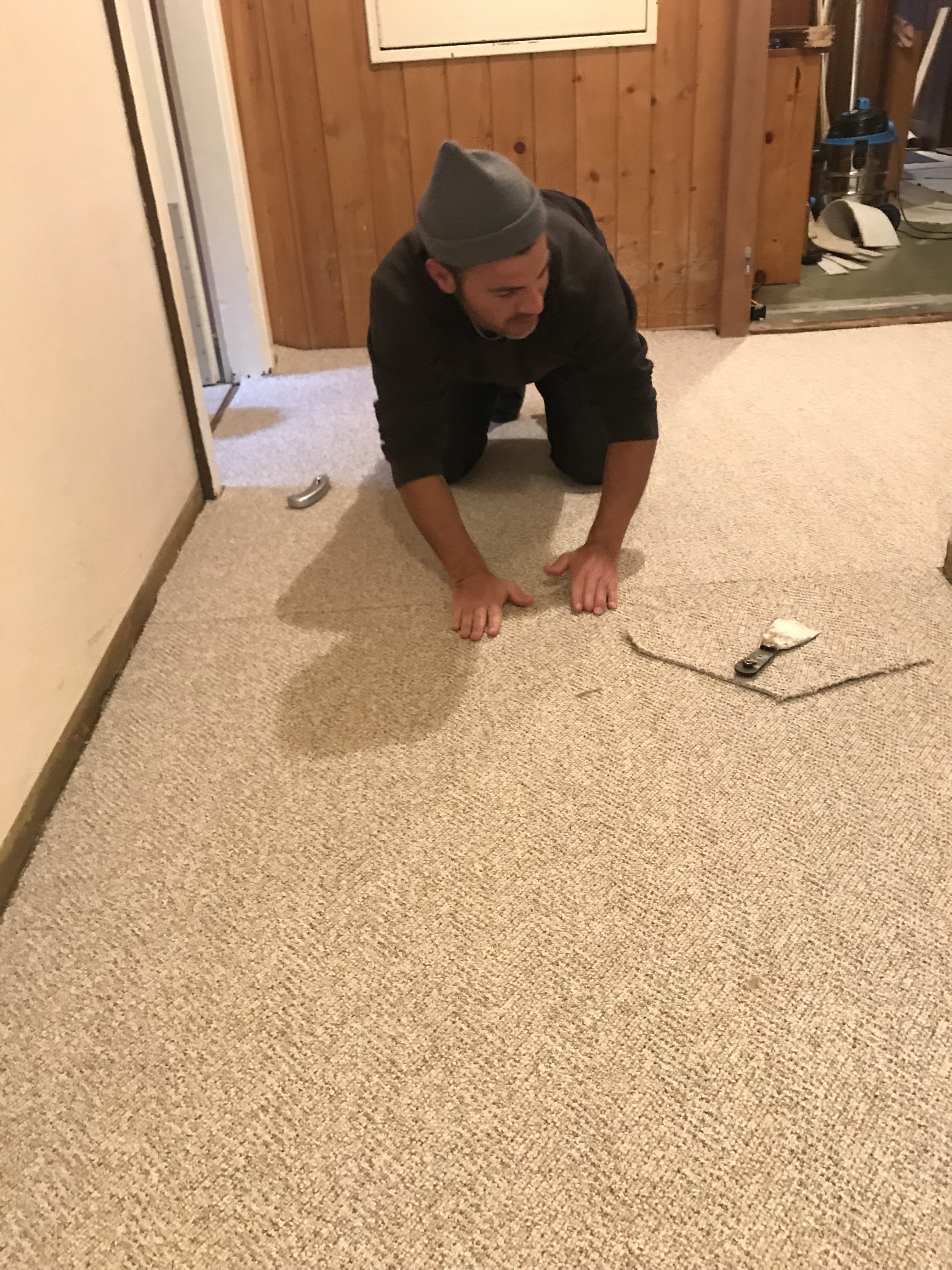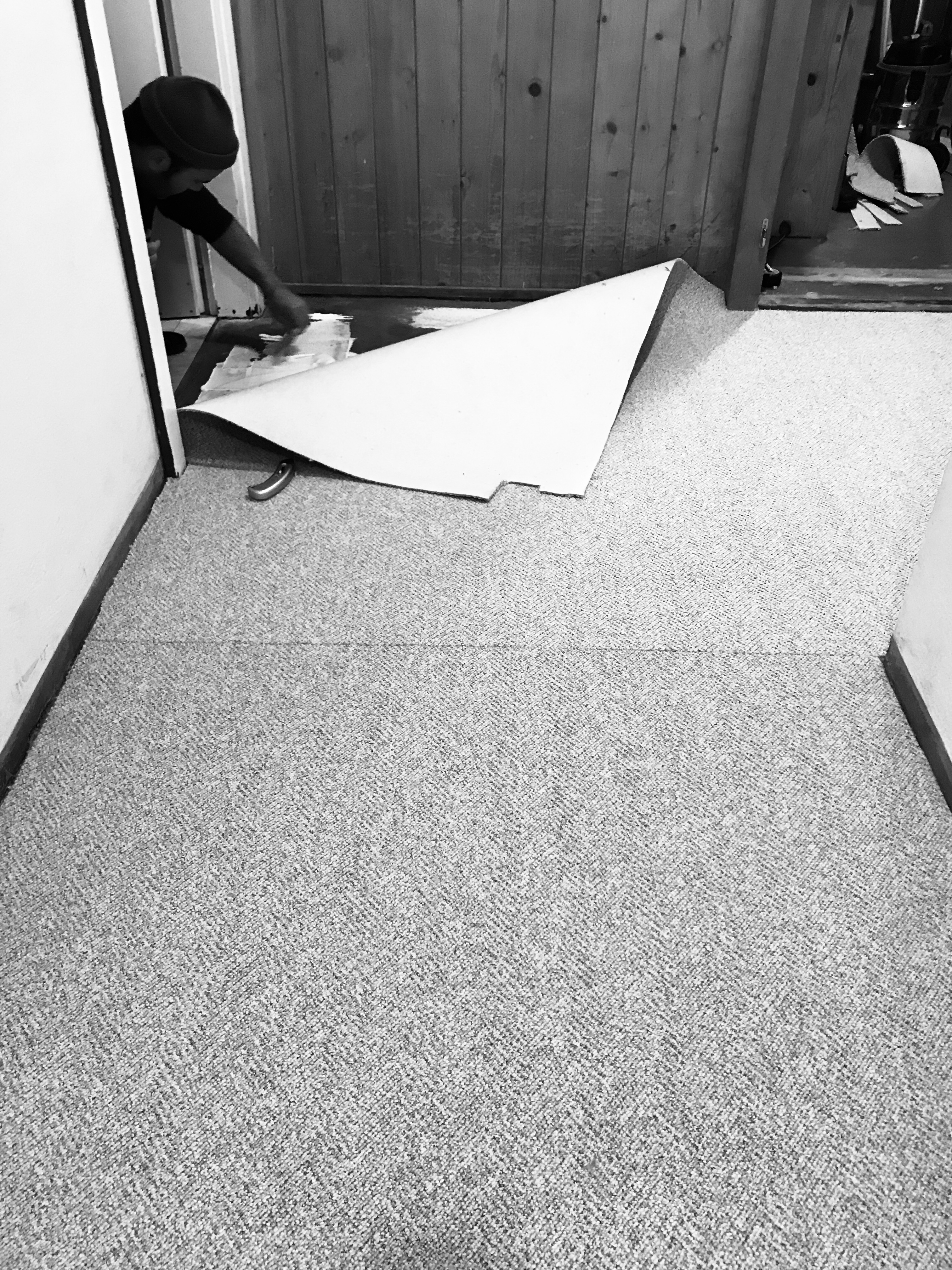 Strong, but homey carpet carefully put in place, by the help of a skilled student.