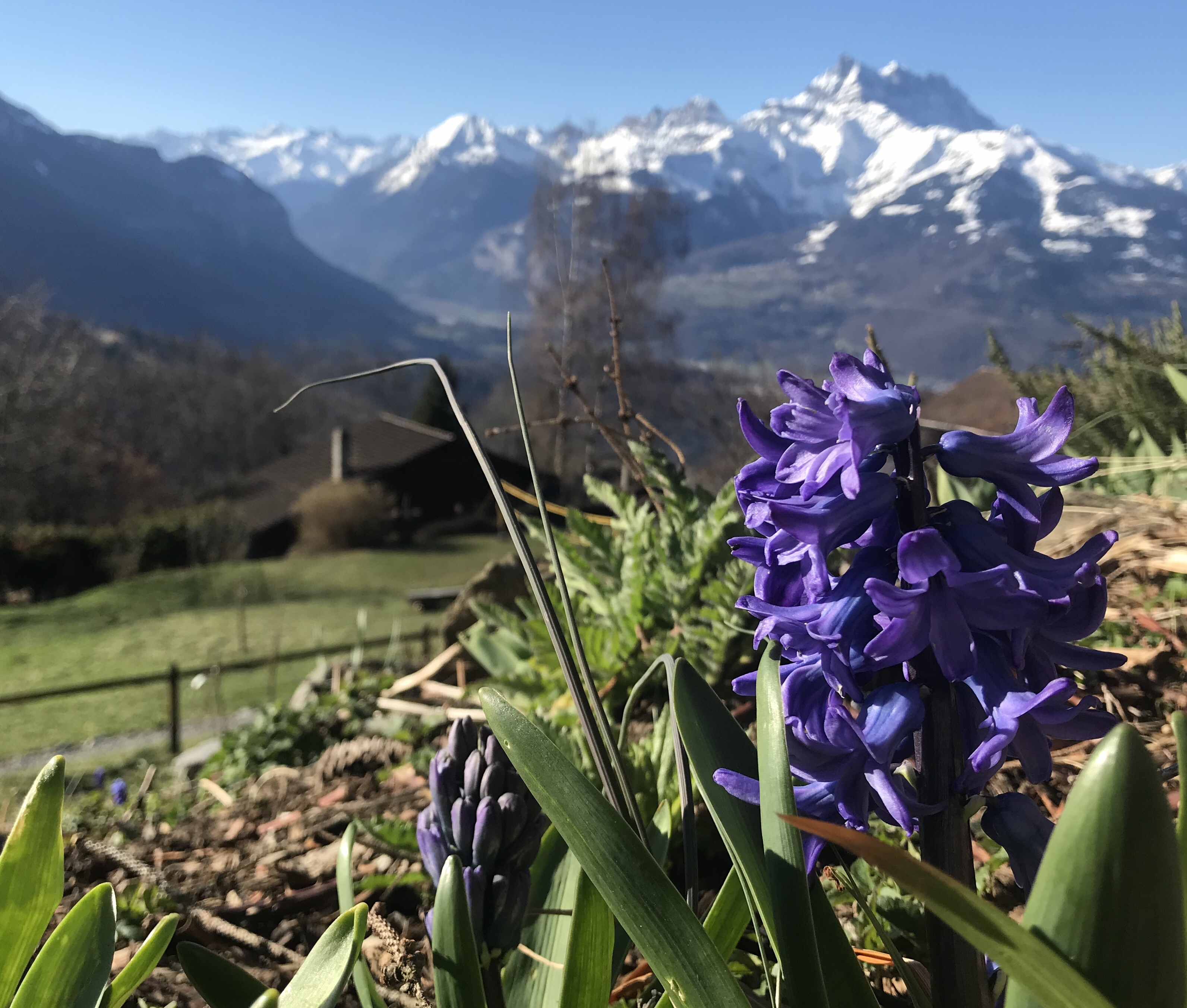 In terms of the landscape, if you were to come to Huémoz today you would be struck by the developments that have taken place over the past three years. Last August, there was a parade that went from Villars to Ollon to celebrate the completion of a protracted (but necessary) road project that widened the Route de Villars, which is the street that runs in front of Bellevue. In addition to this, Huemoz now has street signs—unheard of when I was a student—and in front of Bellevue is a retaining wall where the canton had to slice into our mountain to make room for the widening road. Our resident artist and passionate gardener Per-Ole Lind has worked hard to decorate the retaining walls with “God’s own materials,” meaning that flowers now cover the L’Abri property more than I ever remember in the past. It’s enchanting.